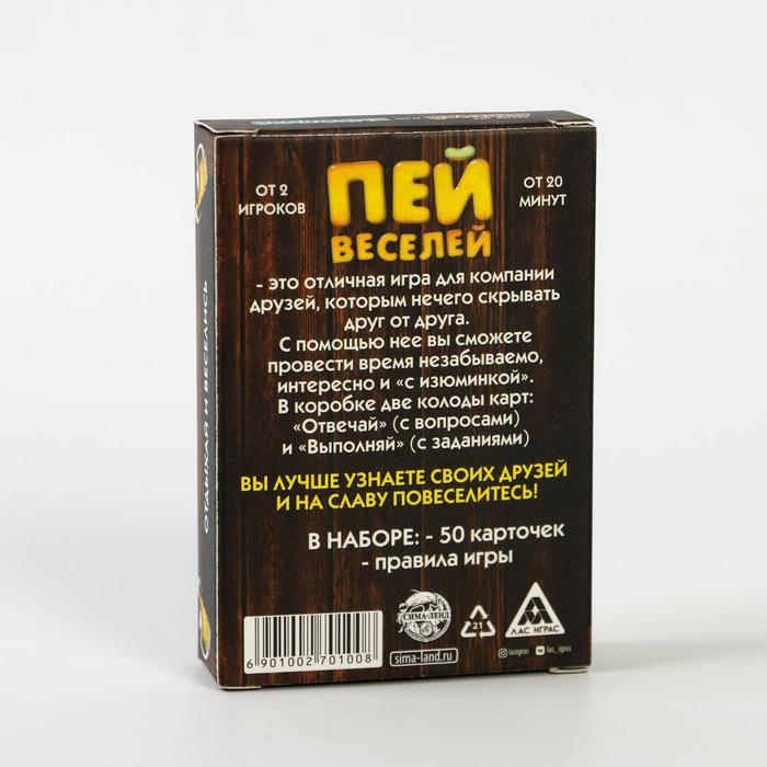 Купить игра для компании "пей веселей" 50 карт от 180 руб. с доставкой до пункта выдачи в Кизляре. Интернет магазин ДекаМаркет. Оплата при получении.